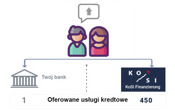 Korzystając z naszej licencjonowanej platformy kredytowej, możemy jednocześnie zapytać 450 banków w ciągu kilku sekund. Taka możliwość zapytania wykracza poza możliwości zwykłego konsumenta. Poprzez właściwe pytania projektujemy odpowiednią konstelację finansowania. Dzięki, np. naszym perspektywicznym poglądom.